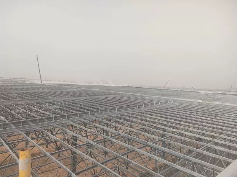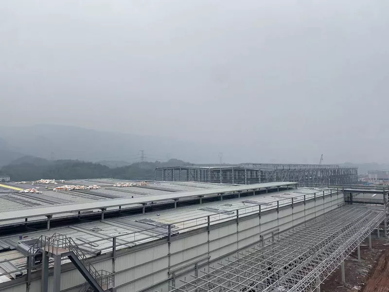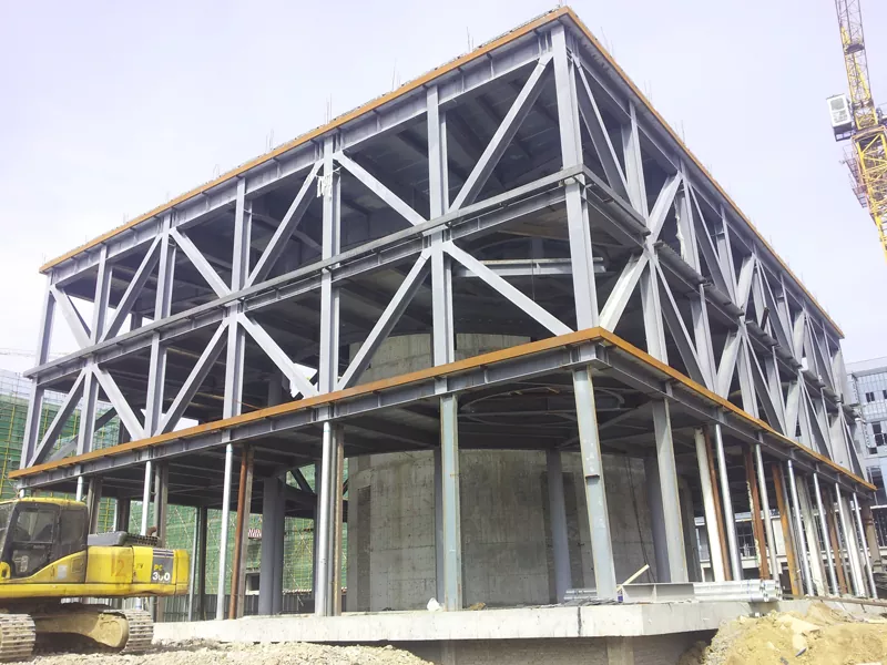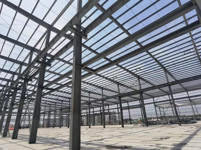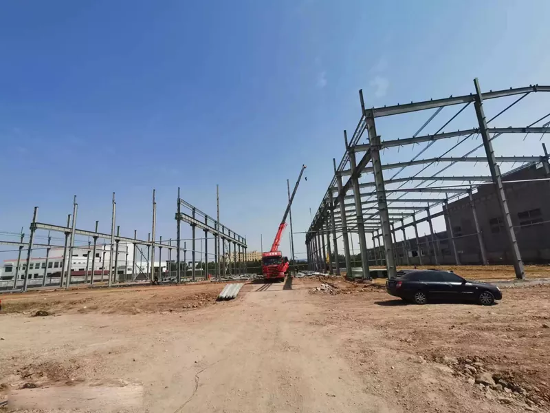 Aðallega samsettur úr stálsúlum, stálgeislum, stálböndum osfrv., Sem eru settir saman í rammabyggingu í gegnum suðu, boltatengingar osfrv.