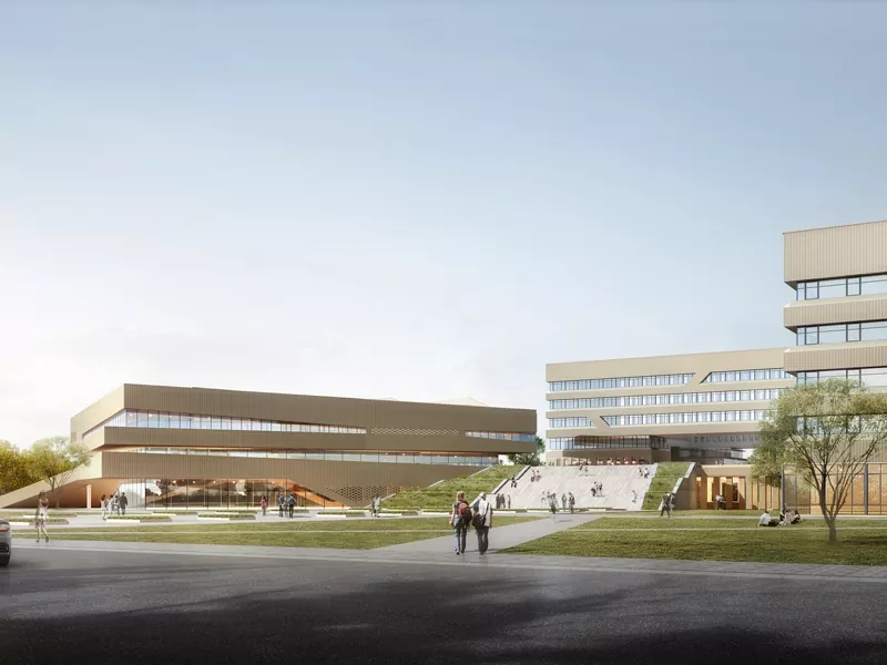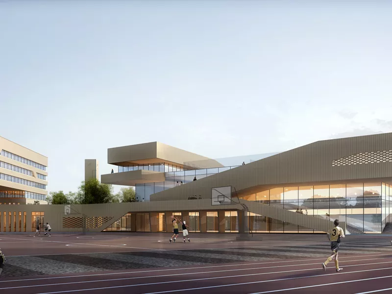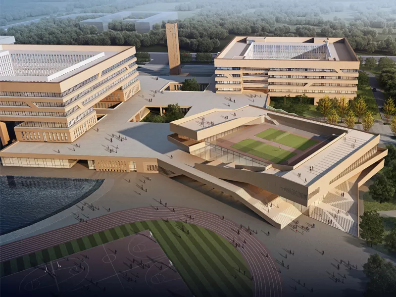 EIHE STEEL STRUCTURE er framleiðandi og birgir menntabygginga úr málmi í Kína. Við höfum verið sérhæfð í kennslubyggingum úr málmi í 20 ár. Forsmíðaðar skólabyggingar úr stálbyggingu er skólabygging sem er byggð með forsmíðaðar stálgrind sem aðal burðarvirki. Þessi byggingaraðferð felur í sér að setja saman byggingarhluta utan vinnustaðs við stýrðar aðstæður í verksmiðjunni, sem síðan eru fluttar á staðinn og settar saman. Forsmíðaðar skólabyggingar úr stálbyggingu bjóða upp á nokkra kosti, þar á meðal: Fljótur byggingartími: Hægt er að framleiða og setja saman forsmíðaðar stálgrindur mjög fljótt. Þetta getur stytt byggingartíma um allt að 50% miðað við hefðbundna byggingaraðferðir. Ending og styrkur: Stál er eitt sterkasta og endingarbesta byggingarefnið, sem gerir það tilvalið fyrir skólabyggingar sem þurfa að þola mikla notkun. Hagkvæmni: Forsmíði getur sparað kostnað við vinnu, efni og undirbúning svæðisins, sem gerir forsmíðaðar skólabyggingar úr stálbyggingu að hagkvæmum valkosti. Sjálfbærni: Forsmíðaðar skólabyggingar úr stáli geta verið hannaðar til að vera orkusparandi, með eiginleikum eins og einangrun, afkastamiklum loftræstikerfi og náttúrulegri lýsingu.