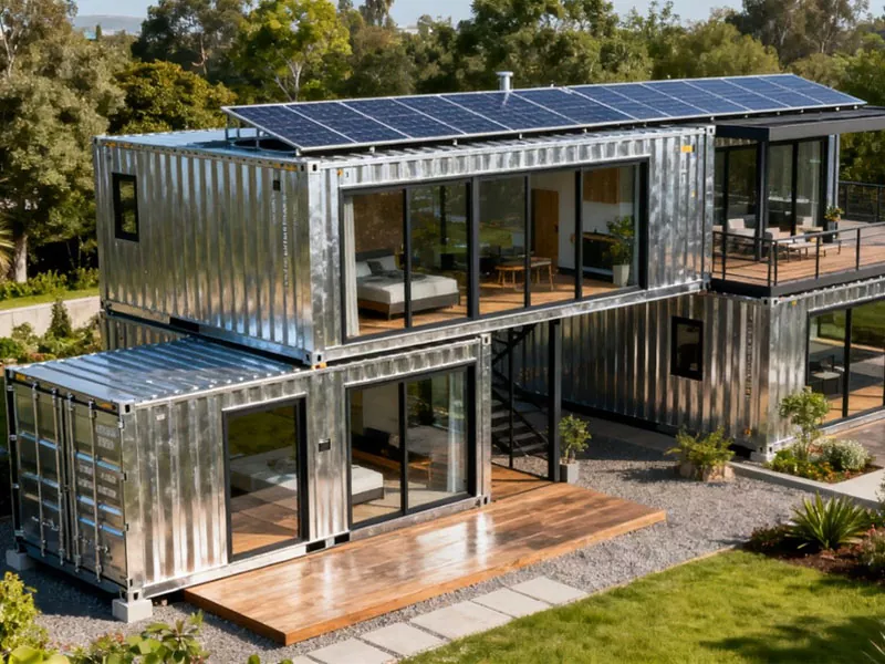 Umhverfisvænt og sjálfbært, húsið styður uppsetningu á vistvænum einangrunarefnum og sólarrafhlöðum til að draga úr orkunotkun og tryggja sjálfbærni orku.
