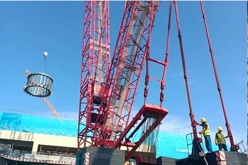 Til að tryggja hnökralausa framkvæmd hífinga, gerði verkefnishópurinn snemma dreifingu: skipulagði sérstaka áætlunarröksemd og fínpússaði hífingarferlið; Settu upp einangrunarviðvörunarsvæði, fylgstu með vindhraða og uppbyggingu stöðugleika í gegnum ferlið; Byggingarstarfsmenn á staðnum vinna saman að samhæfingu margra aðila, þar á meðal smíði, eftirlit og hönnun, og stilla lyftistöðuna í rauntíma.