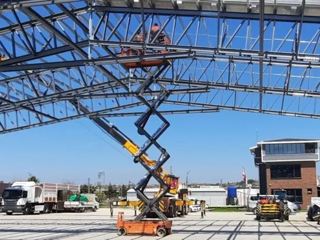 Þegar stálgrindinni er lokið er þakkerfið sett upp, venjulega sem samanstendur af einangruðum málmplötum eða stakri himnaefnum. Útveggir, ef þeir eru með í hönnuninni, eru einnig settir upp með málmplötum, múrsteini eða öðru klæðningu.