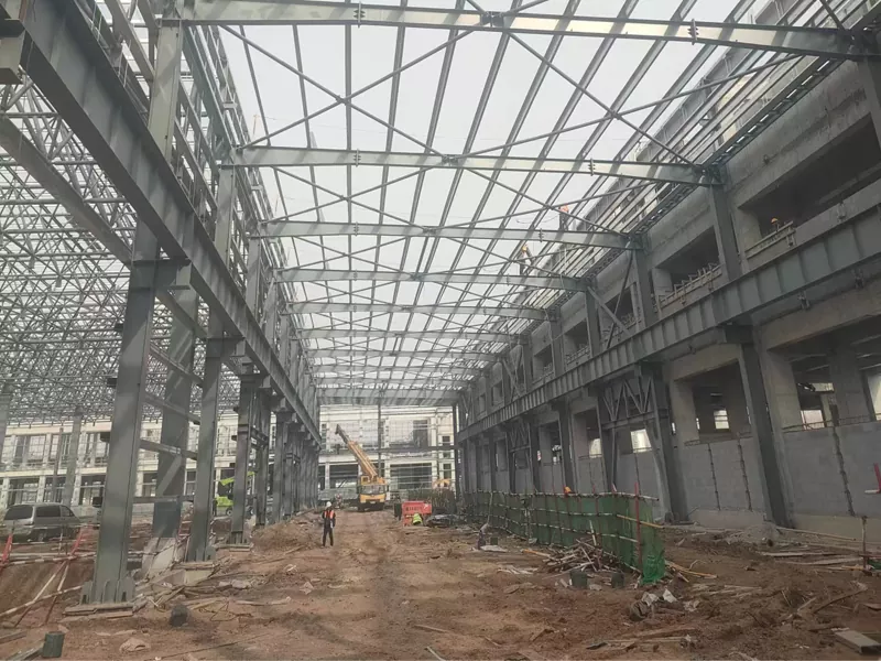 Hástyrkur, léttur uppbygging: Stálgrindageymsla hefur mikinn styrk og litla sjálfsþyngd, auðveldlega að ná „léttum“ uppbyggingu og draga úr byrði á grunninn. Á sama tíma hefur stál framúrskarandi tog-, þjöppunar- og klippaþol, sem gerir það hentugt fyrir hönnun stórra og háhýsi.